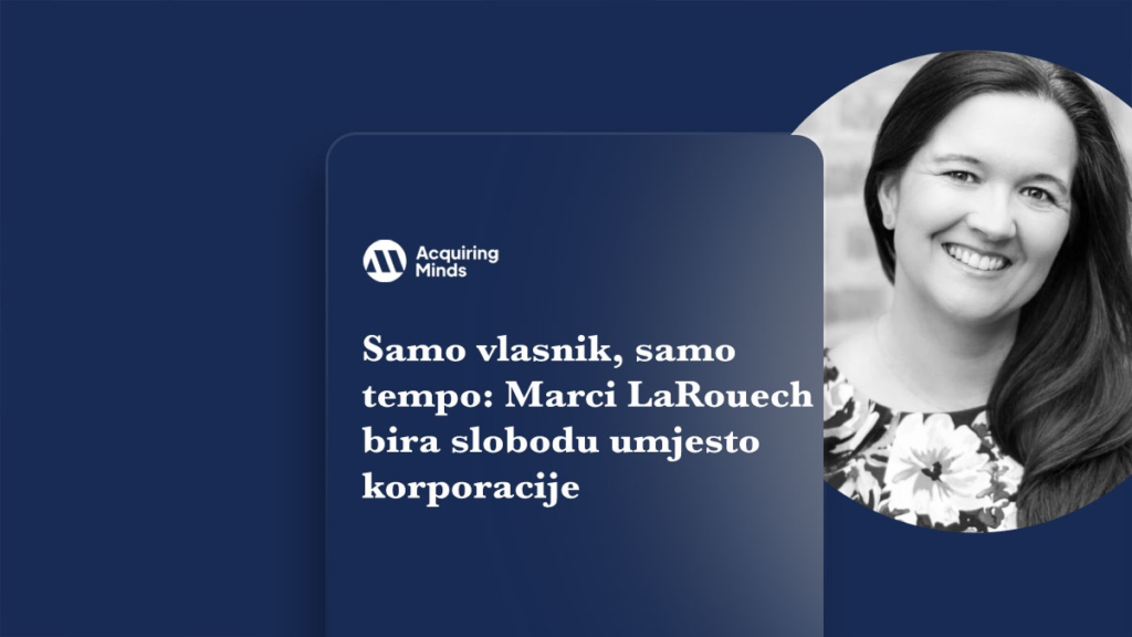 U epizodi “Saying No to CEO Roles, Yes to Ownership” podcasta Acquiring Minds, Marci LaRouech razgovara o svojoj odluci nakon uspješno vođenog HR poduzeća koje je prodala, u kojemu su je ulagači i bankari pozivali da prihvati nove CEO izazove i ponovi uspjeh. No Marci je imala sasvim drugačiji cilj — željela je raditi po vlastitim pravilima i vlastitim tempom. Umjesto da prihvati pozamašnu ulogu, odlučila je pronaći nešto što će joj dati kontrolu i fleksibilnost — i pronašla je idealnu priliku. Kupila je malenu, gotovo mikrobiznisnu HR konzultantsku firmu s prihodom manjim od milijun dolara, u kojoj je osim vlasnice bio zaposlen samo jedan stalni radnik, dok su svi ostali angažirani kao 1099 freelanceri. Za mnoge bi možda imalo smisla izgraditi nešto od nule, no Marci je iskoristila svoje znanje, mrežu i specifične ugovore kako bi uspjela tamo gdje drugi možda ne bi — i to uz odlične uvjete kupnje. Ključne teme koje pokreću ovu priču su gotovost za posao «na poslu», vrijednost vremena nad novcem, kupnja po povoljnoj vrijednosti, ali i snaga ugovora koje već posjeduješ. Ona nije ušla u posao zbog novca — nego zbog slobode i fleksibilnosti. Reći ne ulogama izvršnog direktora, da vlasništvu Link na podcast Za hrvatske startupere i poduzetnike ova priča nosi važne pouke. Prvo, osnaživanje kroz kupnju malog, već postojećeg poslovanja može biti mnogo brži i elegantniji put nego graditi od nule. Drugo, kupovina po atraktivnim uvjetima i po niskom multiple može donijeti vrijednost bez velikih financijskih rizika. Treće, osobni motiv — balans između života i rada — jednako je važan kao financijski ishod; motivira te da posao uspije i da ti ne upravlja on. Cijelu epizodu možeš poslušati ovdje: Saying No to CEO Roles, Yes to Ownership – Acquiring Minds. Ako razmišljaš o kupnji poslovanja u Hrvatskoj — posebno ako te zanima kupiti nešto što ti donosi fleksibilnost, sigurnost i smisao — slobodno nam se javi na [email protected]. Rado ćemo ti ponuditi besplatne konzultacije i pomoći ti na putu prema poduzetničkoj slobodi.