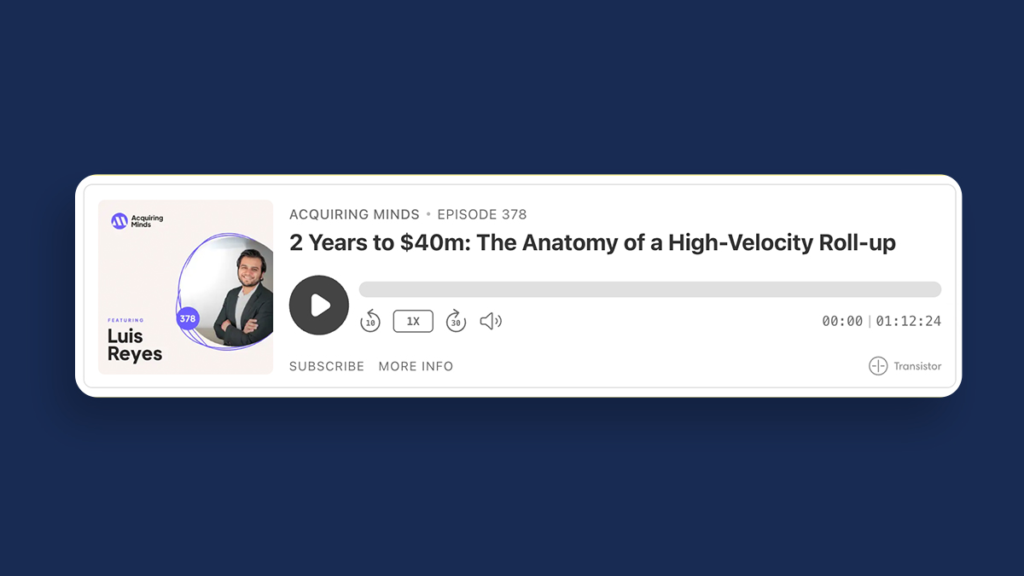 Cijelu epizodu možeš poslušati ovdje: 2 Years to $40m: The Anatomy of a High-Velocity Roll-up – Acquiring Minds.