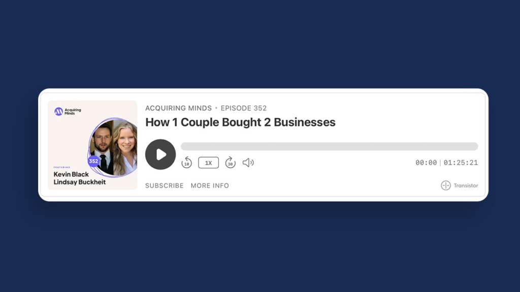 Cijelu epizodu možeš poslušati ovdje: How 1 Couple Bought 2 Businesses – Acquiring Minds.