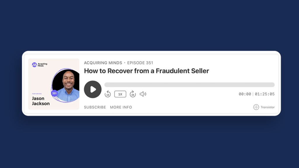 Cijelu epizodu možeš poslušati ovdje: How to Recover from a Fraudulent Seller – Acquiring Minds.