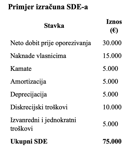 Sadrži li SDE plaću vlasnika? Da, vlasnikova plaća uključena je u izračun SDE-a kao prilagodba.