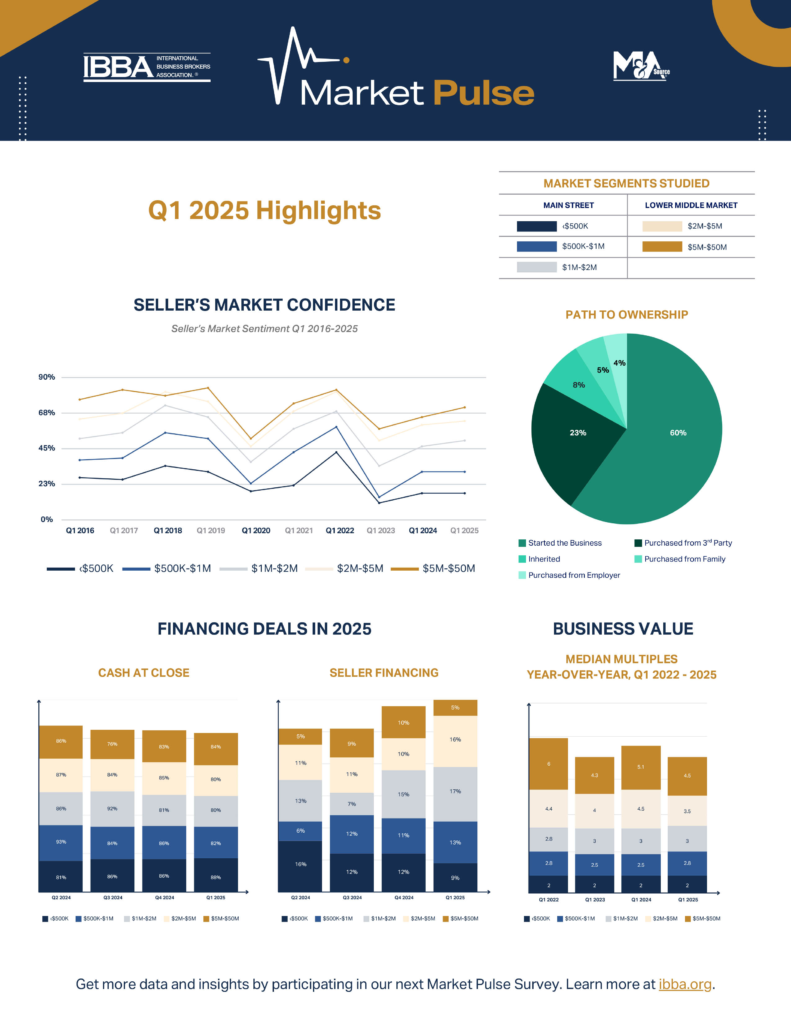 Tržište kupoprodaje malih i srednjih poduzeća (SME – small and medium enterprises) u svijetu, osobito u SAD-u, doživljava značan rast i profesionalizaciju. U Hrvatskoj, gdje oko 99,7% svih gospodarskih subjekata čine upravo mikro, mala i srednja poduzeća, takvo tržište tek ulazi u zreliju fazu. Cilj ovog rada je analizirati ključne trendove iz najnovijeg izvješća Market Pulse Highlights Q1 2025 koje objavljuje IBBA (International Business Brokers Association), te primijeniti uvide na hrvatsko tržište s ciljem boljeg razumijevanja procesa kupoprodaje poslovanja s obje strane – prodavatelja i kupca.